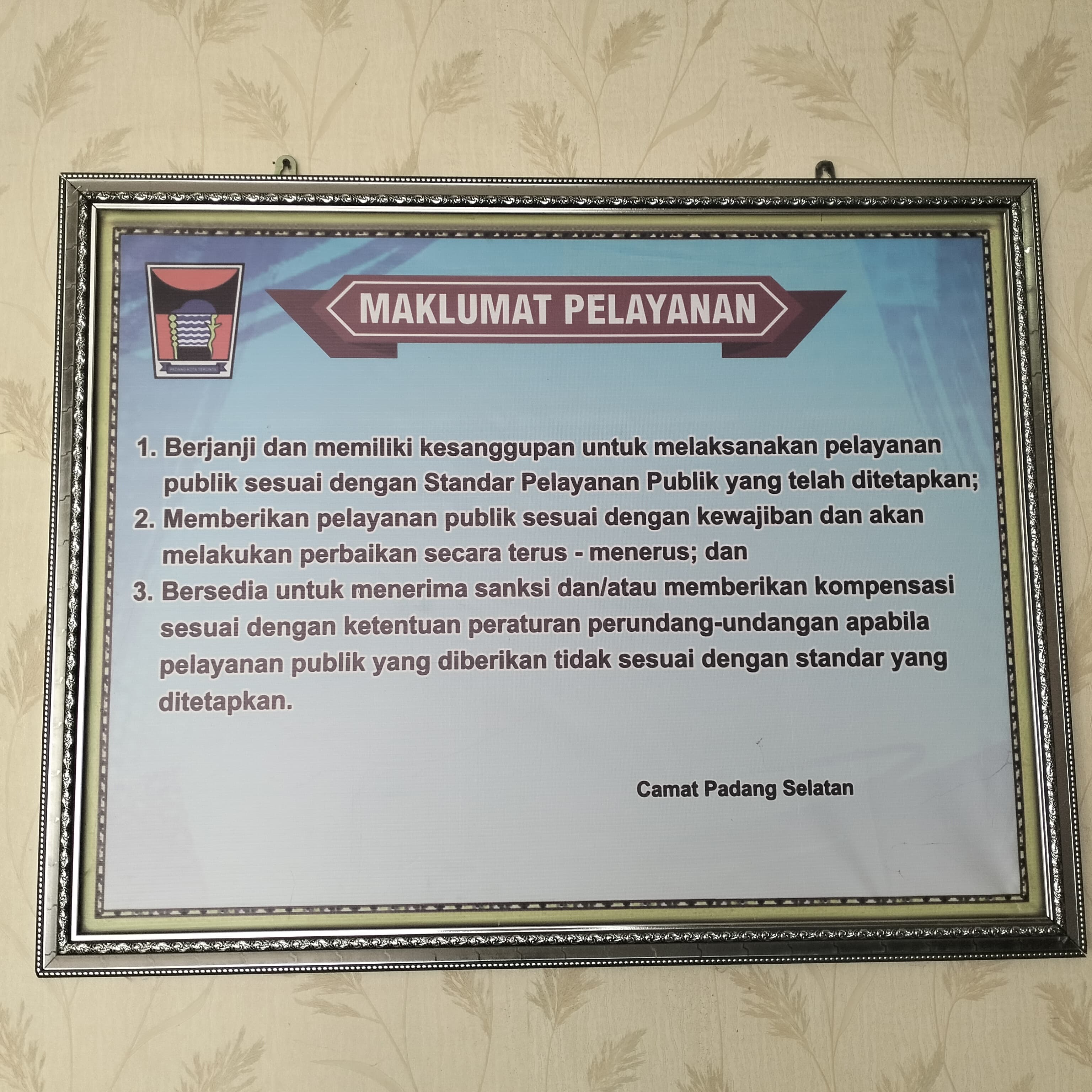 Maklumat Pelayanan Kecamatan Padang Selatan Tahun 2025